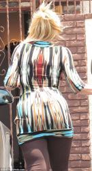 Kirstie is losing weight, but this dress is a horror on her. and she is wearing thick old-lady stockings.