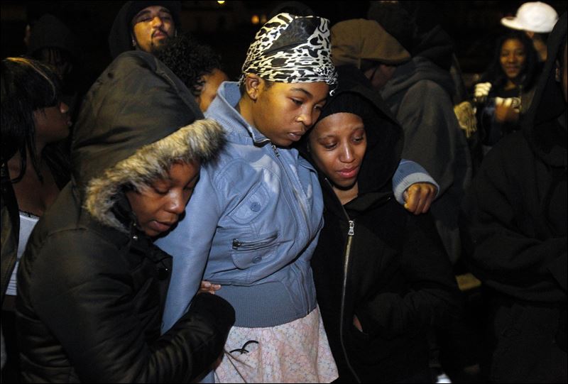 ![]() Photo of Antonio Johnson, 27, who was found dead outside a Parkdale home at about 4:18 p.m. Friday. ![]() Cousin Antoinette Tilman, left, sister Shavone Belcher, and girlfriend Mariah Livingston hug near a memorial on the corner of Tecumseh and Hoag in honor of Deadrick Rocker, the city's 38th homicide victim. ![]() Picture of slain Deadrick Rocker, the city's 38th homicide victim Two Toledo families were mourning Saturday the deaths of two young men — both shot and killed in separate incidents that marked the final two homicides in the city for 2011. Antonio Johnson, 27, was shot to death Friday afternoon at 1937 Parkdale Avenue, the home of the suspect. Police have arrested and charged with murder Mr. Johnson’s cousin, 35-year-old James C. Smith. Mr. Johnson’s mother, Lisa Wright, said her son was killed “needlessly and “senselessly” over an alleged disagreement with something posted on Facebook. “This is senseless. He had a heart of gold. [The shooter] was upset about something posted on Facebook. My son lost his life over Facebook,” Ms. Wright said. The two also had a disagreement over a broken signal light on a vehicle, she said. Mr. Smith of 1937 Parkdale Ave. was arraigned Saturday in Toledo Municipal Court. He is being held in the Lucas County jail in lieu of $1 million bond. Hours after Mr. Johnson was killed, 17-year-old Deadrick Rocker, the 38th homicide victim of 2011, was gunned down at about 11:50 p.m. Friday at the corner of Hoag and Tecumseh streets in Central Toledo as he and another teen were leaving a social gathering, said Toledo police Sgt. Joe Heffernan. The other teen, a 16-year-old boy who has not been identified, was critically injured, authorities said. Both boys were shot multiple times, although it’s unclear where on their bodies they were hit. Neither authorities nor family members of young Rocker could establish a clear connection between the two teens. Lucas County Coroner Dr. James Patrick said an autopsy for the Rocker youth had not yet been set. Police believe an initial call came in from a man who was driving in the area and saw the bodies in the street. Both victims were taken to Mercy St. Vincent Medical Center, where the 17-year-old victim was pronounced dead shortly after arrival and the 16-year-old victim was taken into surgery. Sergeant Heffernan said no suspects had been named in the later incident. About 50 people gathered for a vigil Saturday night at the site where young Rocker — who was known to his friends and family as “Pooh” — was killed. Shavone Belcher, the boy’s cousin, said he was “a good kid who never caused any trouble.” Also among the mourners were young Rocker’s sisters and brother. Pictures of the victim on Facebook show him flashing gang signs, but his best friend, Rhay Villolovos, said he was not in a gang. Esquitisha Hawkins, one of young Rocker’s sister at the vigil, said she wasn’t sure whether he was in a gang. “He was a good person. He was always smiling and always laughing. Was he in a gang? I guess you could say that is why all these people are here,” Ms. Hawkins said of those at the vigil. “I told him to stay off these streets, but we grew up on this side of town and these are his friends too.” The 17-year-old was living with his mother in West Toledo, Ms. Hawkins said. Regarding Mr. Johnson’s death, Sergeant Heffernan said the circumstances for the shooting are unclear, but there appeared to be an ongoing argument between Mr. Johnson and Mr. Smith that culminated in the Friday shooting. “Did [the suspect] shoot out of anger or did he shoot for safety? It’s a little gray right now,” Sergeant Heffernan said. The murder charge was filed after police took a statement from Mr. Smith and then consulted with the Lucas County Prosecutor’s Office, he said. Mr. Johnson was taken to Toledo Hospital where he was pronounced dead, authorities said. According to a police statement, Mr. Johnson, whose address was not listed, traveled to the Parkdale address at about 4:15 p.m. and pounded first on a screen door and then, after breaking that door, on the main door. Police say Mr. Smith fired one shot through the door that struck Mr. Johnson in the chest. ![]() With mere hours remaining in 2011, Toledo police are investigating the city’s 37th homicide of the year. James C. Smith, 35, was charged with murder Friday evening in the shooting death of Antonio Johnson, 27, at 1937 Parkdale Avenue in the central city. According to a police statement, Mr. Johnson, whose address was not listed, traveled to the Parkdale address at about 4:15 p.m. and pounded first on a screen door and then, after breaking that door, on the main door. Mr. Smith, who police said resides at 1937 Parkdale, fired one shot through the door that struck Mr. Johnson in the chest. Mr. Johnson was taken by Life Squad to Toledo Hospital, where he was declared dead. Mr. Smith was taken to the Safety Building, where he gave investigators a statement. Upon consultation with the Lucas County Prosecutor’s office, Mr. Smith was arrested, charged with murder, and booked into the Lucas County jail, Toledo police Sgt. Tim Noble said in a prepared statement. |