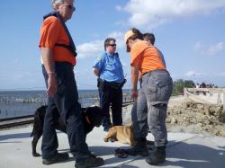 On land, trained dogs -- Nola, a Belgian Malinois and Tracker, a chocolate Labrador -- scoured the former Lincoln Beach amusement park area along Lake Pontchartrain near Hayne Boulevard and Vincent Road Wednesday morning.